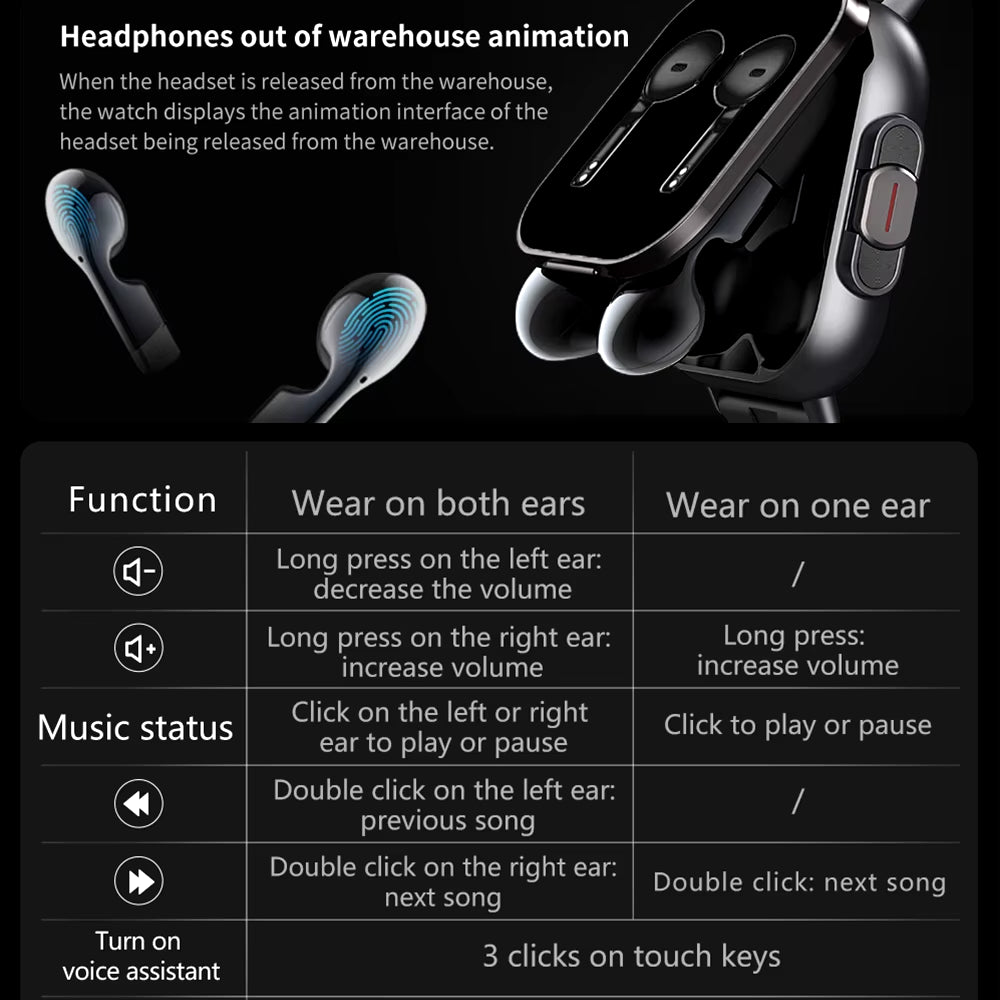GPS Smart Watch TWS 2-In-1 Headset Bluetooth Call Heart Rate Blood Pressure Health Monitoring Headphones Play Music Smartwatch